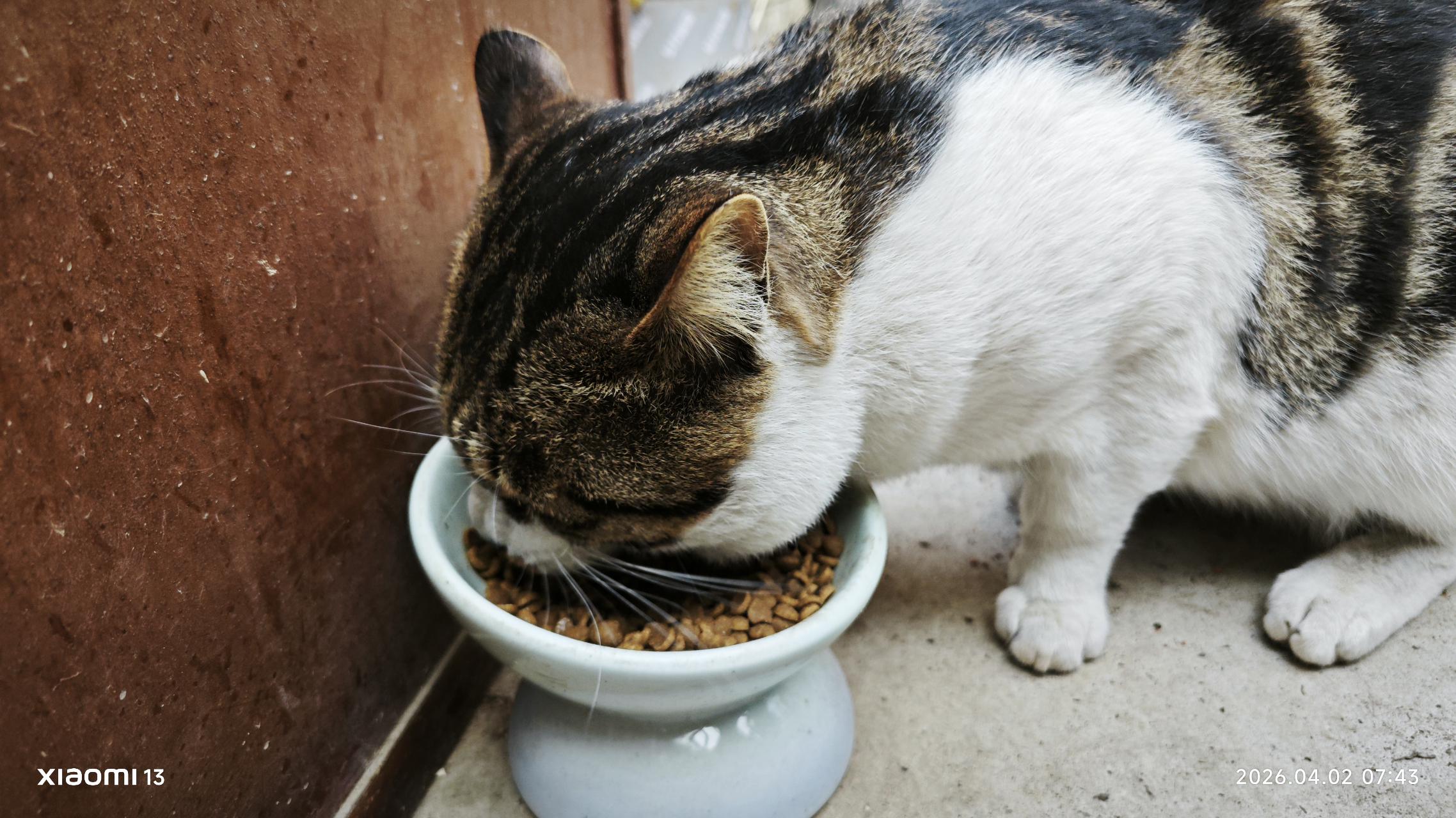 我们几个人给它众筹猫粮,而因为我是每天早晨基本都是最早到公司的,所以除了休息天,每天都喂它,另外的同事,在吃过中饭后,也会去看看它。