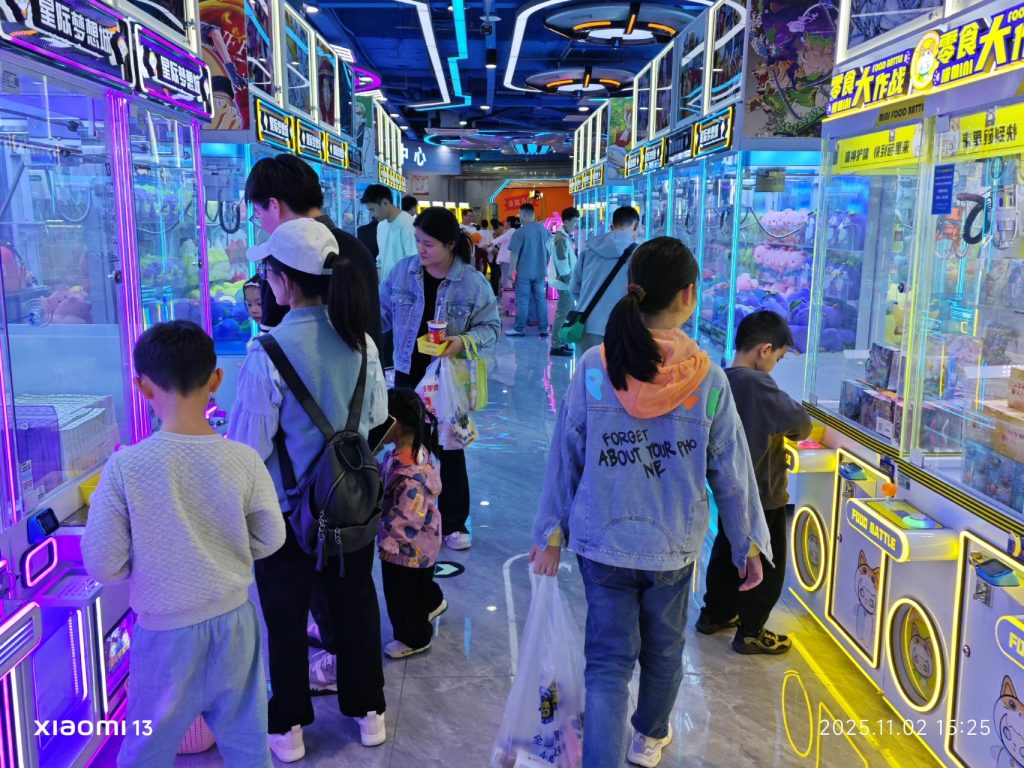 不知道为啥,逛得我觉得挺累的,于是就跟她聊起了星际梦想城微信群里的事,大家抱怨这些抓娃娃的机子被调得越来越难抓了,再建议我们上去看看。到了这家店里,菲菲向工作人员要了一杯饮料,而我兑换了帐号里的剩余的110个游戏币,菲菲喝了一口之后,就递给了我,她开始她的抓娃娃与零食事业,而我又去看了小米、华为、OV的电子产品,约好一会儿来找她。